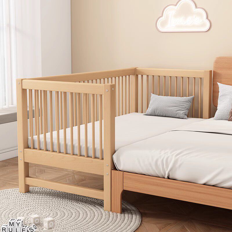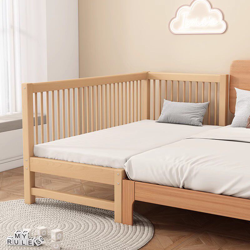 📚 三一木业山毛榉木儿童床拼接大床带护栏床边加宽宝宝婴儿床实木小