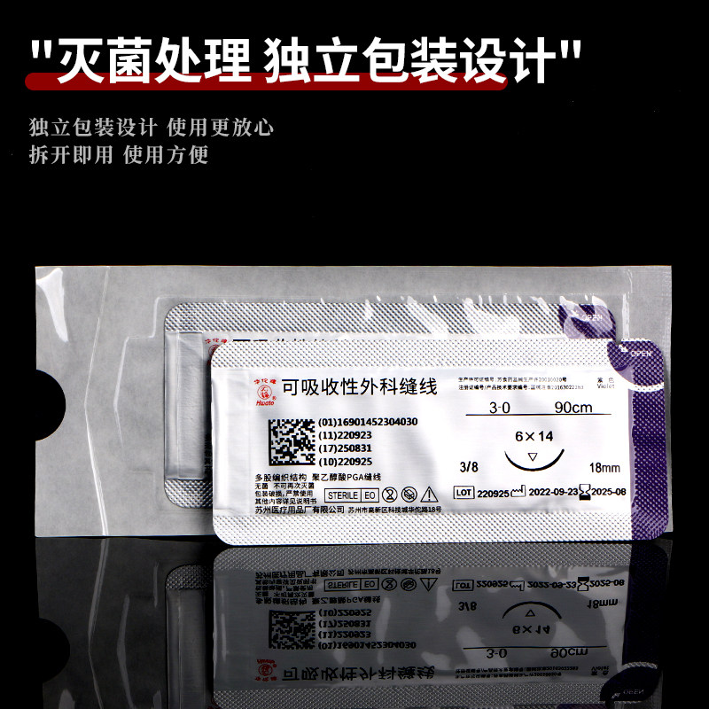 📚 医用华佗牌可吸收外科口腔6双眼皮内缝合线带针5手术pga7提眉眼袋