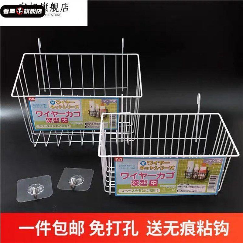 📚 免打孔挂篮勾篮带勾铁艺挂篮斜口宿舍收纳框网格挂架整理篮置物架