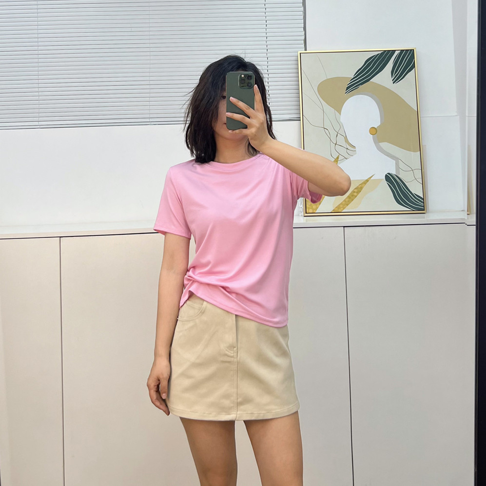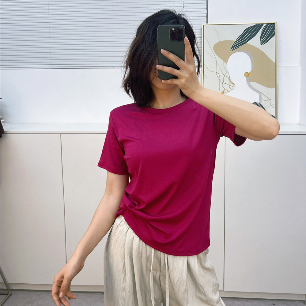 📚 夏款轻薄凉爽宽松显瘦圆领短袖简约t恤女 莱赛尔天丝棉面膜上衣
