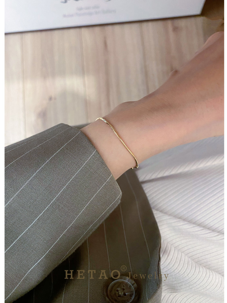 📚 HETAO荷桃闪闪立体粗蛇骨手链全18K金素金彩金手链白百何同款项链