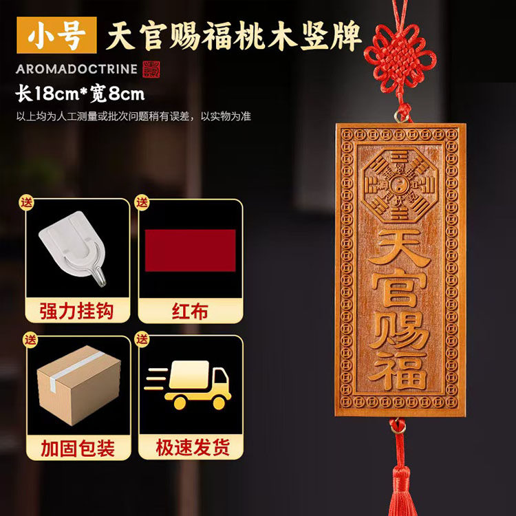 📚 真桃木天官赐福牌匾挂件门贴门对门横牌竖版家居客厅挂饰