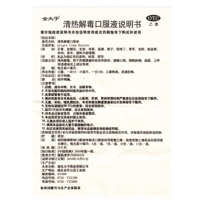 📚 金太子清热解毒口服液10ml*10支喉咙痛的药口液儿童