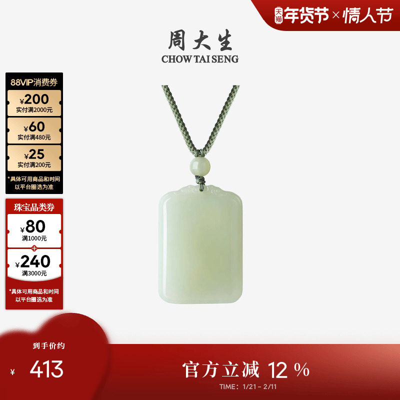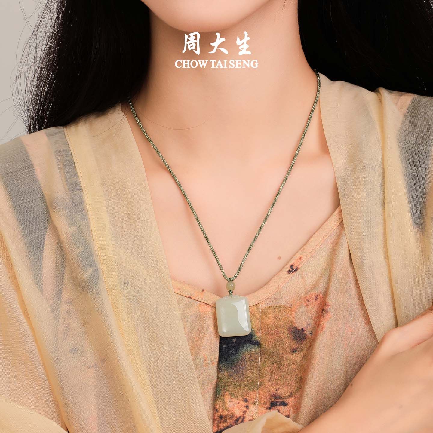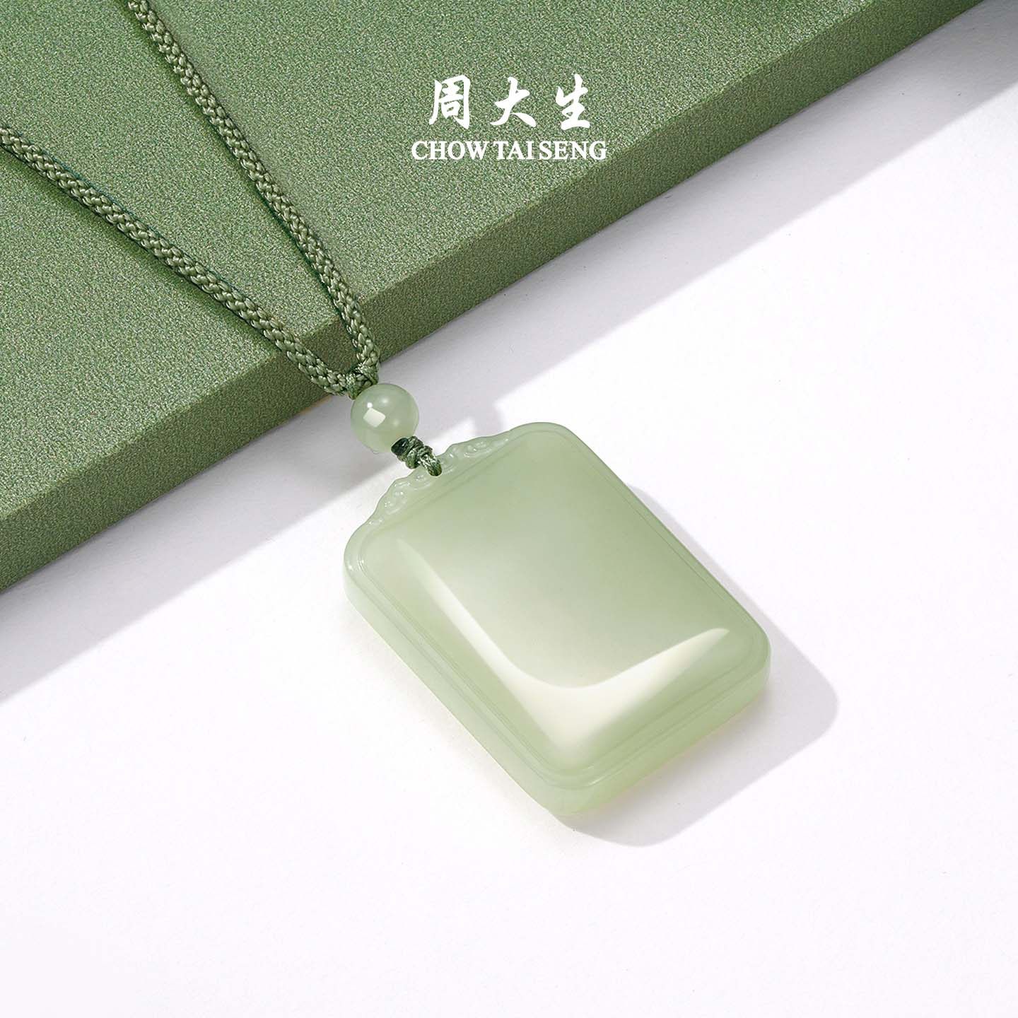 📚 周大生和田玉吊坠平安无事牌玉石情侣编绳挂坠项链送女友新年礼物