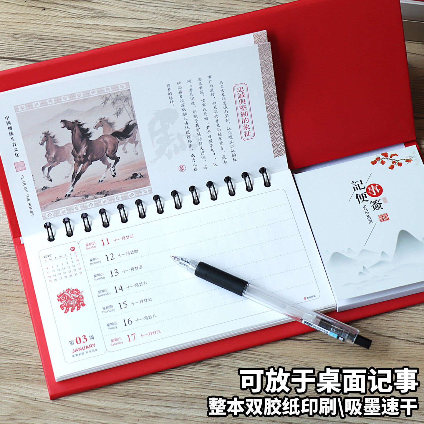 📚 2026周历 马年记事台历 桌面国风日历便签本企业广告定制商务打卡