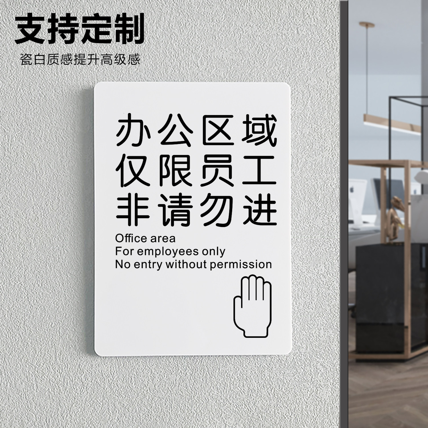 📚 亚克力办公区域仅限员工非工作人员非请勿入咖啡厅奶茶店贴牌室内禁止吸烟抽烟请移步室外温馨提示牌定制