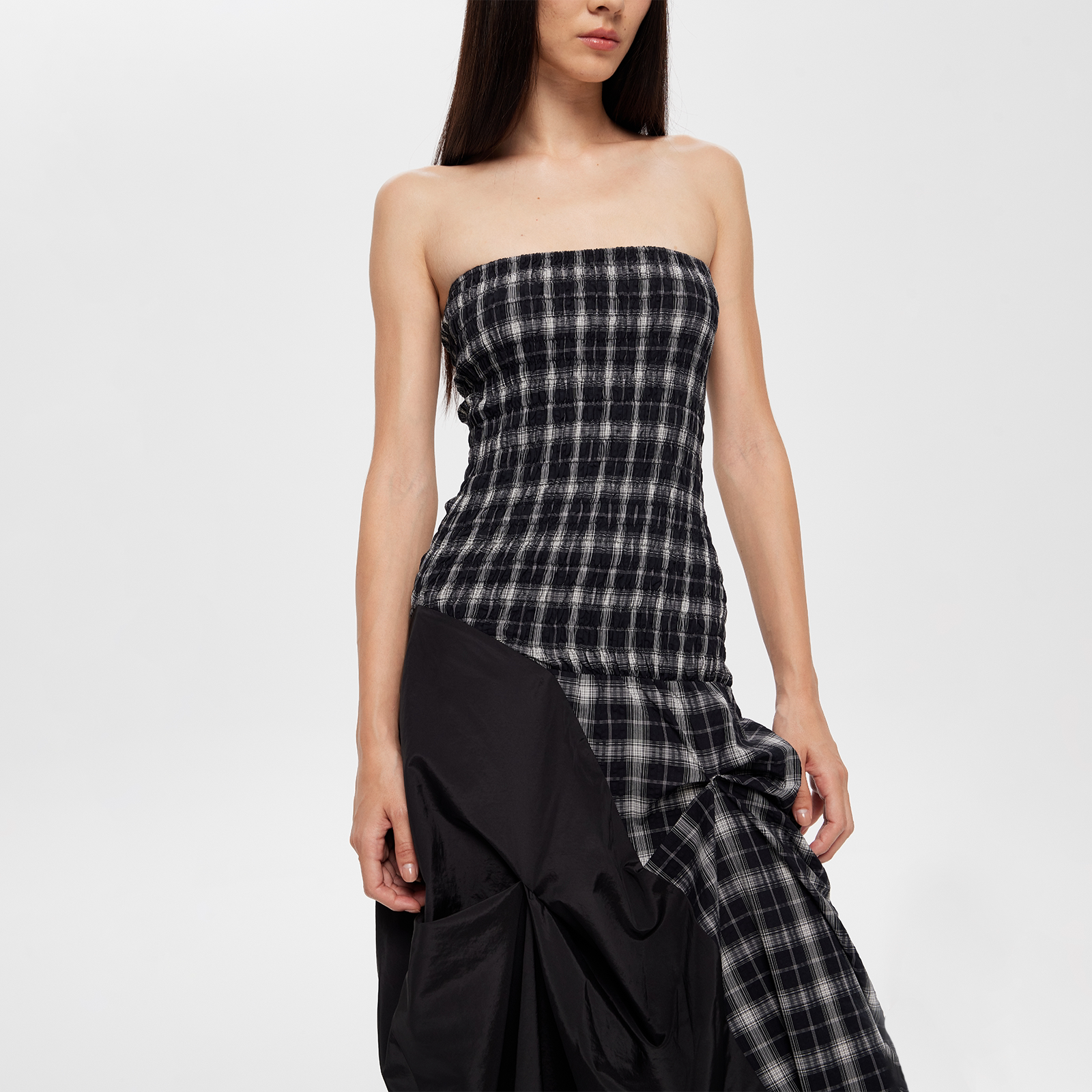 📚 RURE 2WAY两穿立体剪裁格纹抹胸连衣裙2026爆款今年流行长裙
