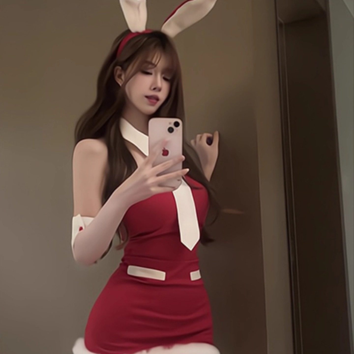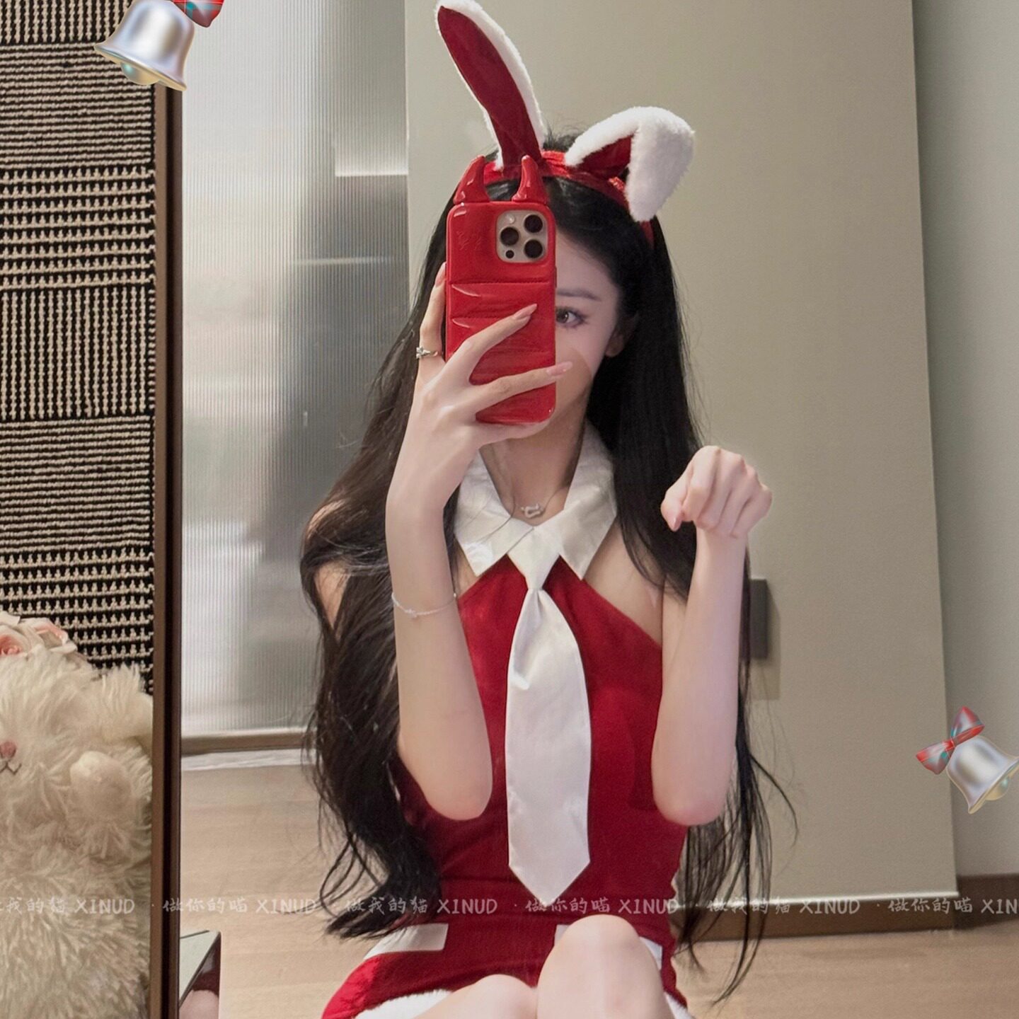 📚 圣诞穿搭女兔女郎cos服装制服套装红色睡裙性感纯欲氛围感连衣裙