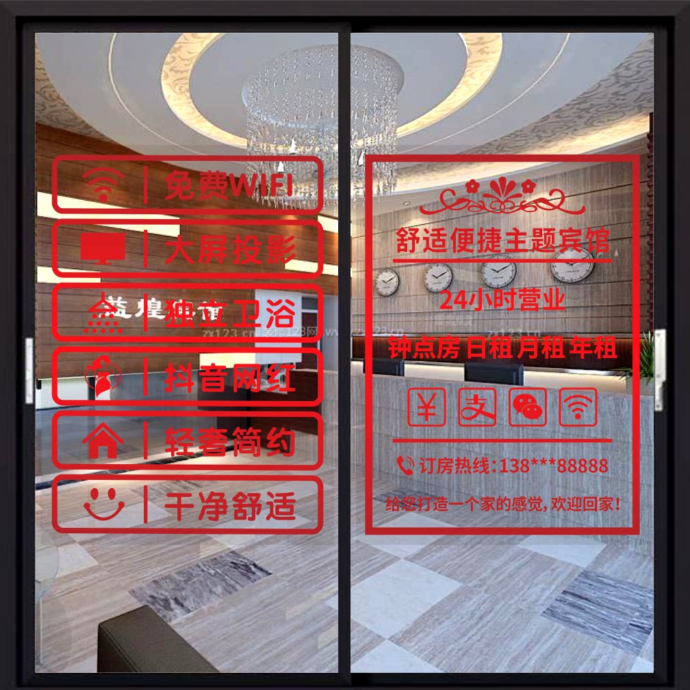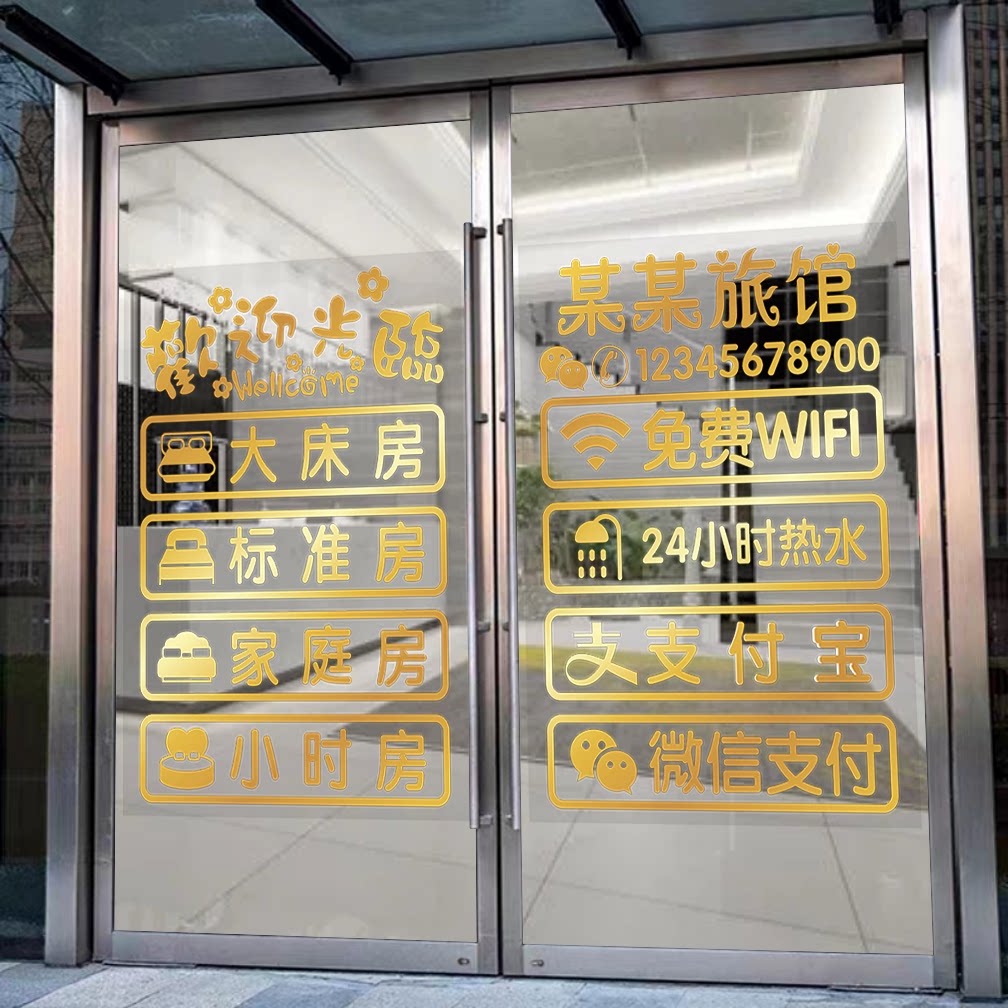 📚 住宿宾馆旅馆酒店民宿玻璃门贴纸定制欢迎光临旅行社橱窗广告贴画