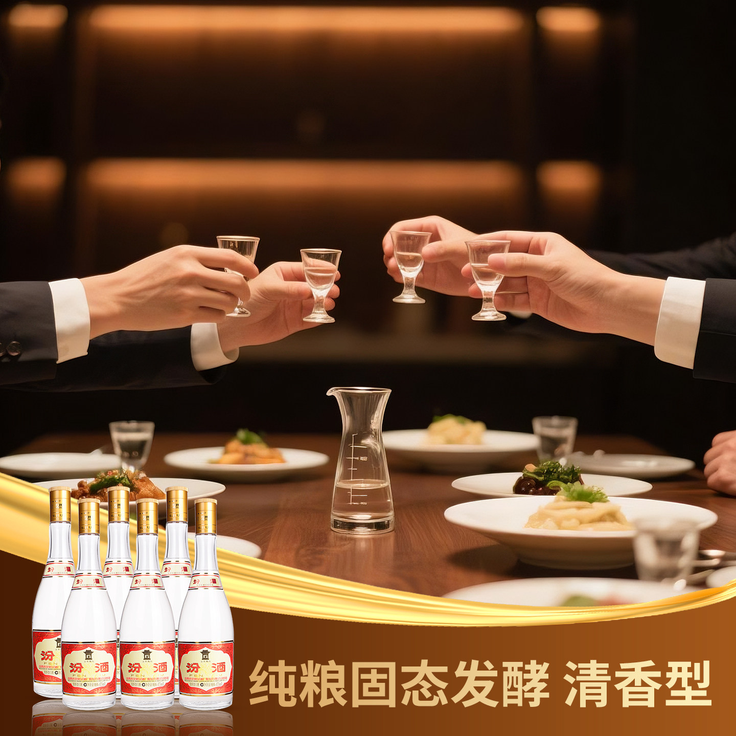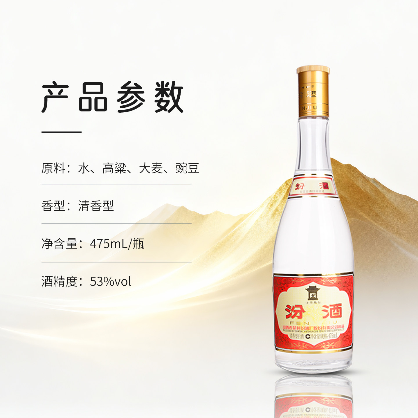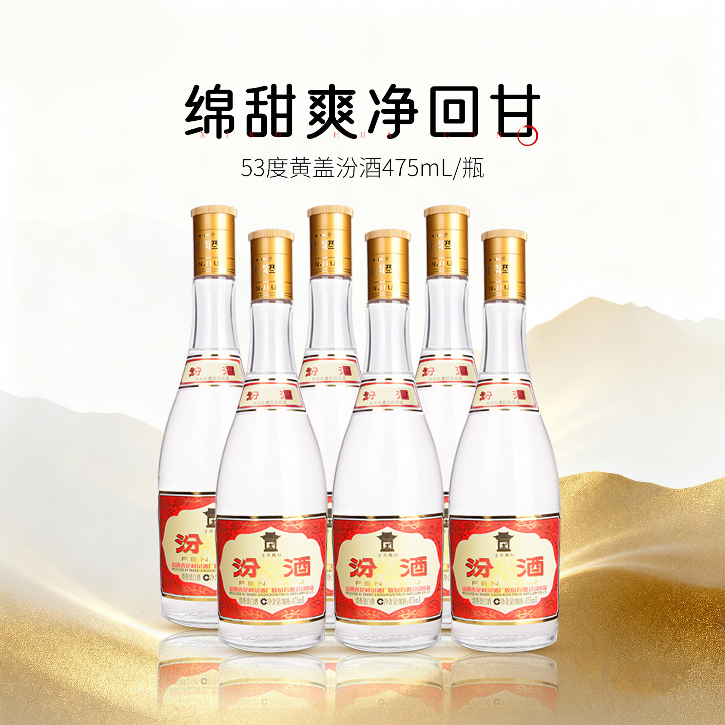 📚 杏花村官方旗舰店 53度黄盖汾酒475ml*6瓶高度清香型玻汾白酒