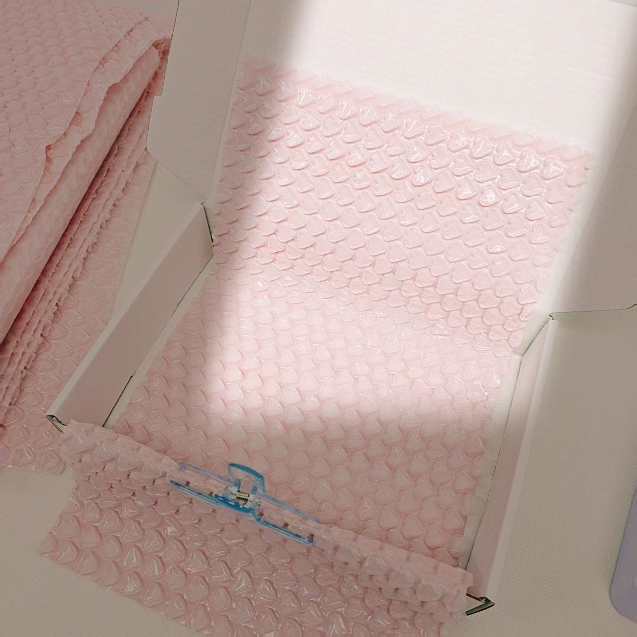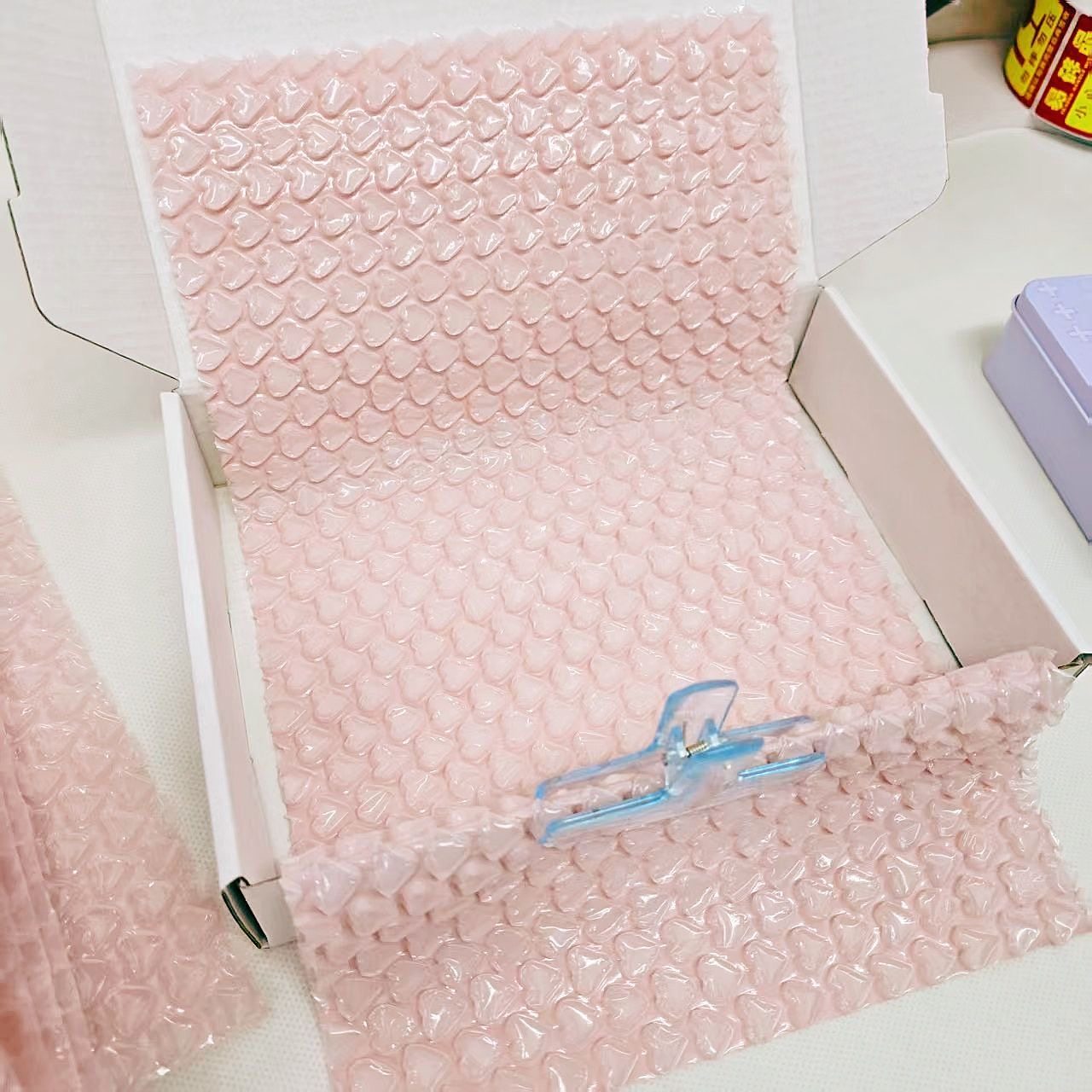 📚 彩色爱心气泡膜厂家直销包邮加厚防震垫打包膜粉色心形泡沫纸卷装