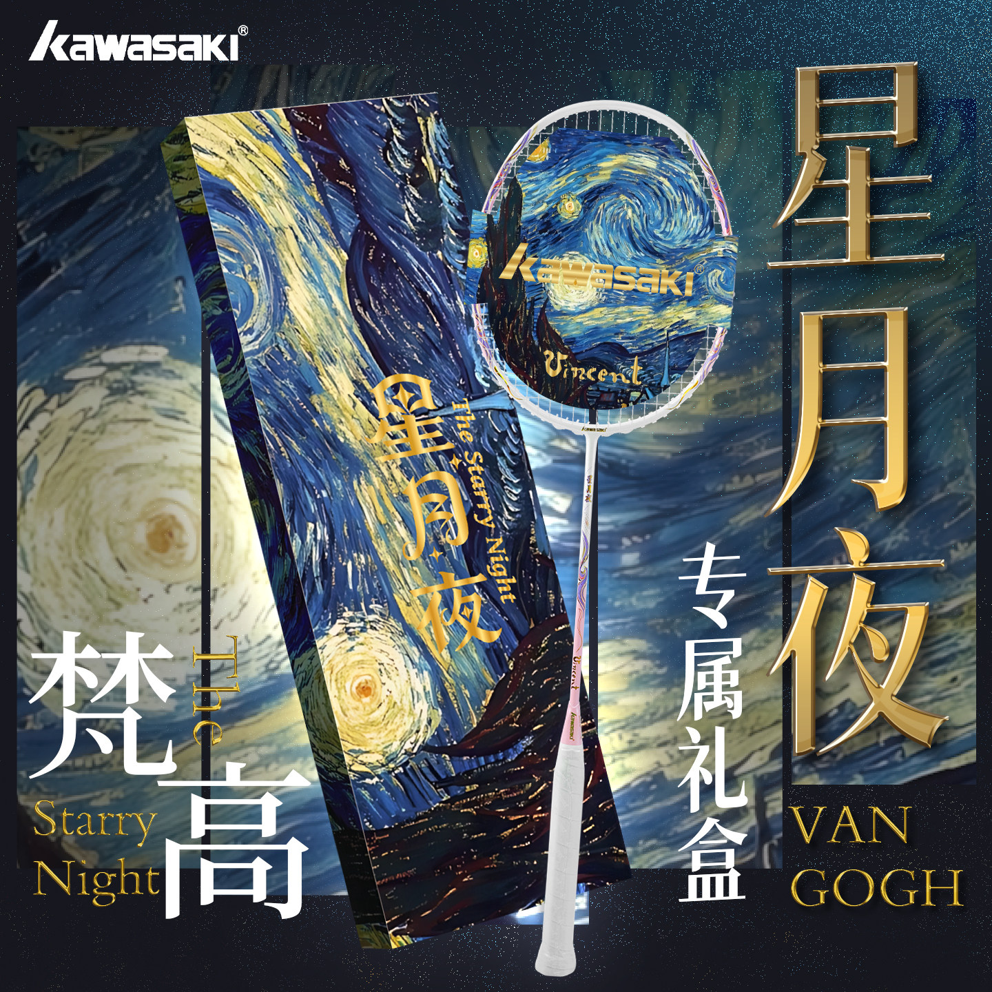 📚 川崎羽毛球拍世界名画莫奈梵高达芬奇联名礼盒单拍进攻型超轻正品