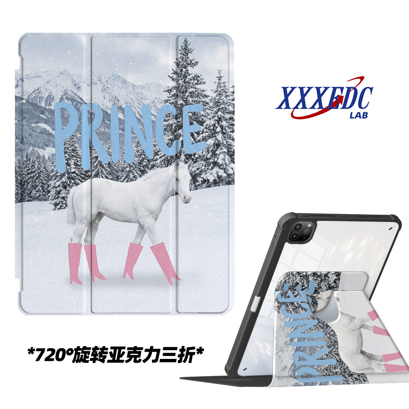 📚 原创小众高级感白马王子适用11代2025款air7ipadpro11寸三折ipad壳防弯亚克力平板壳9代10.2寸air4/5带笔槽