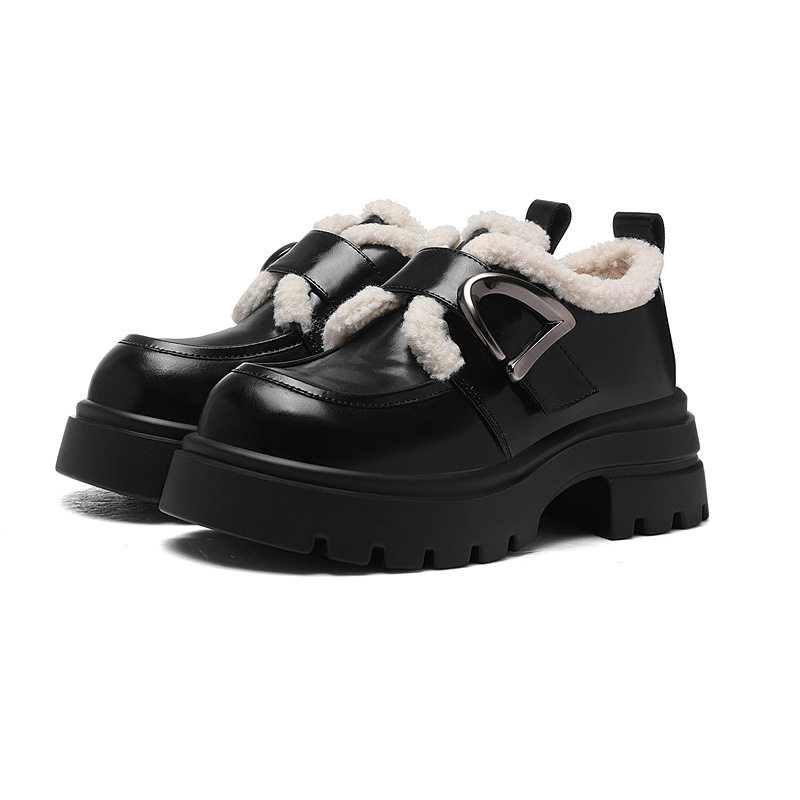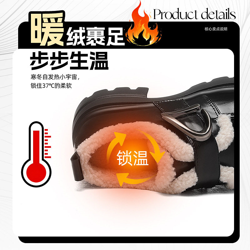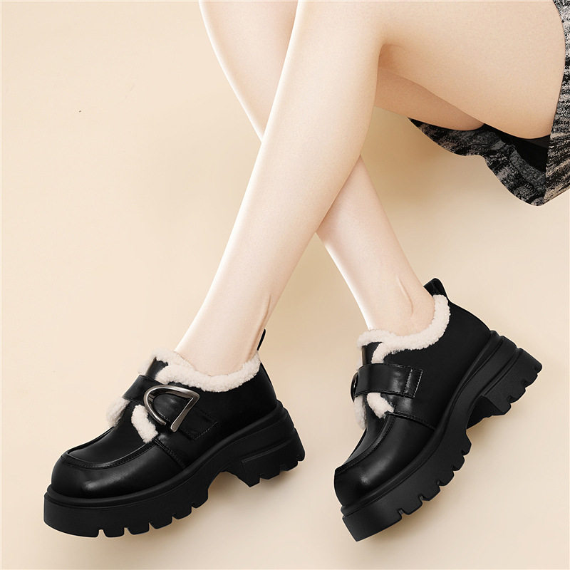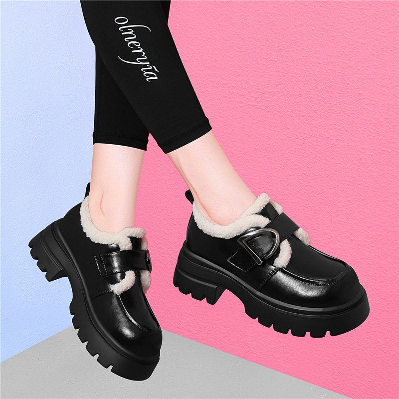 📚 厚底增高加绒乐福鞋女新款英伦风一字扣带高跟小皮鞋百搭单鞋棉鞋