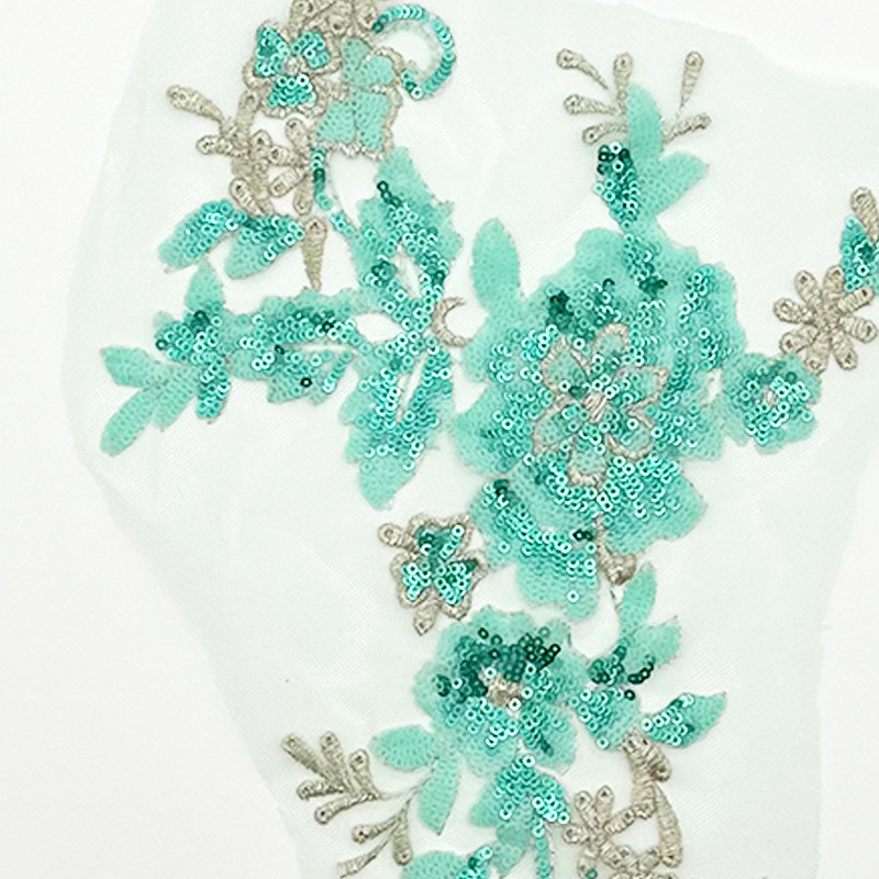 📚 绿色亮片刺绣布贴珠片绣花手缝补丁贴汉衣服装饰辅料手工缝DIY