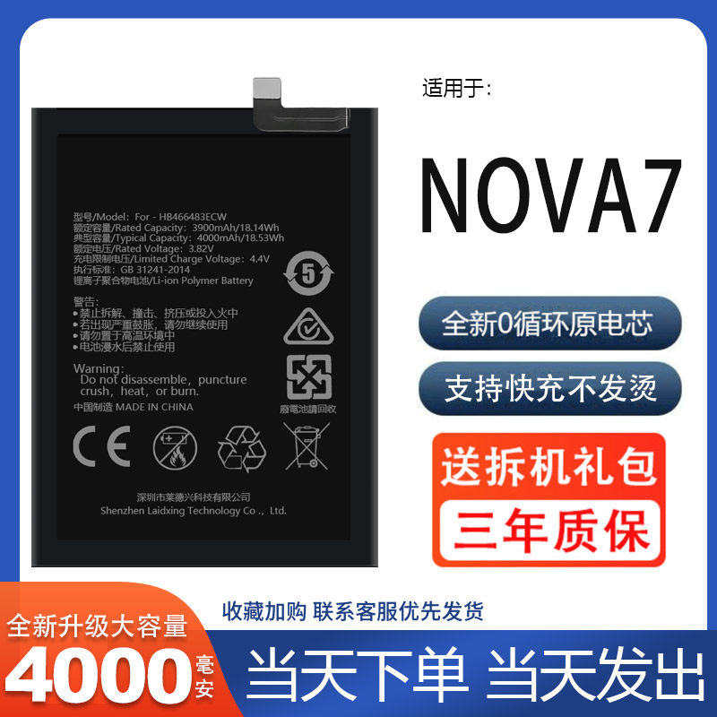 📚 适用于华为nova7电池JEF-AN00大容量n0va原装原厂正品手机LA2电板