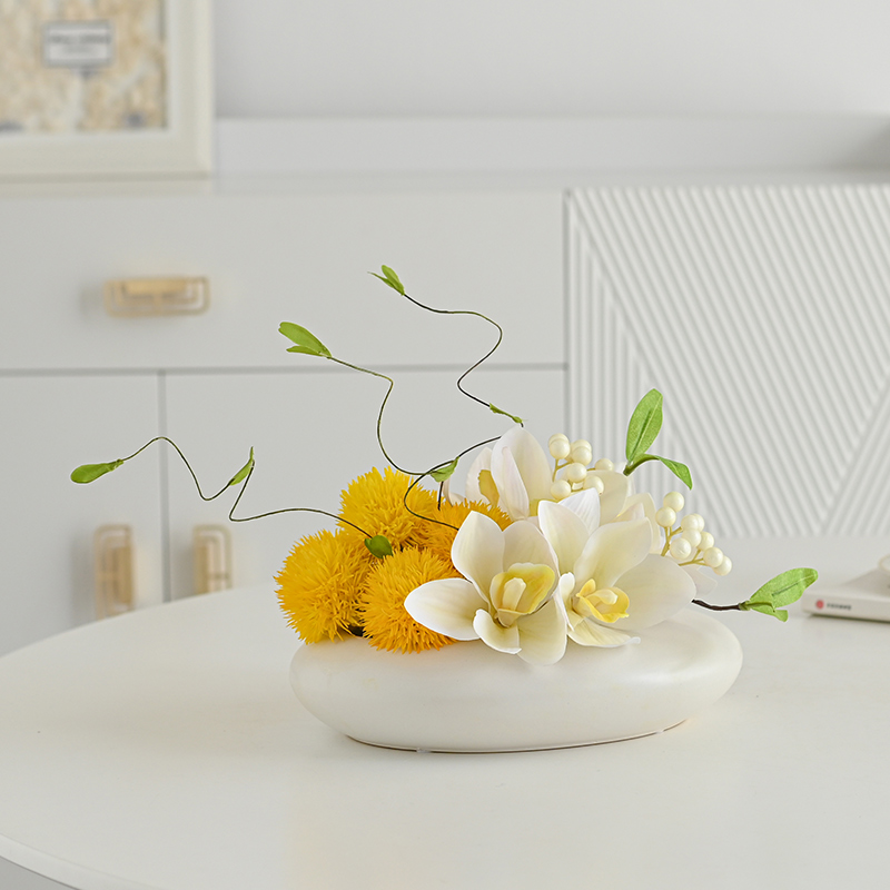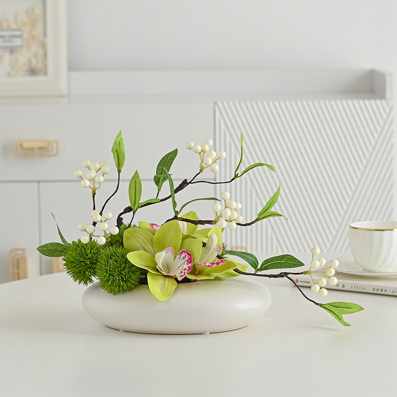 📚 酒店大圆桌中间转盘摆花餐桌摆件饭店摆设仿真圆形桌花高级装饰品