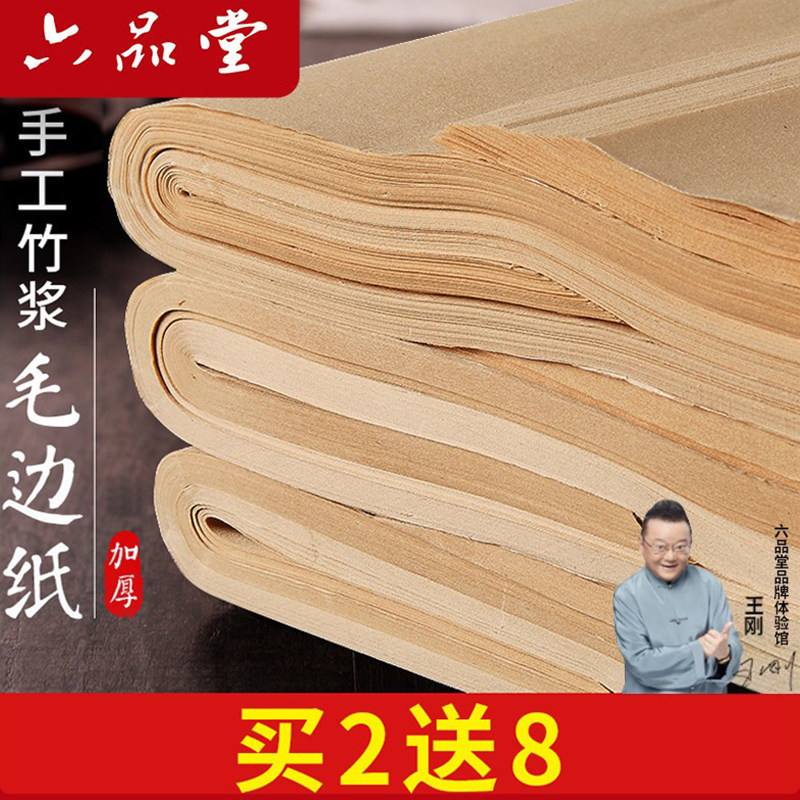 📚 六品堂 仿古毛边纸书法练习专用无格宣纸竹浆元书纸半 手工加厚半生半熟四尺书法用纸作品纸初学者毛笔字竹纸
