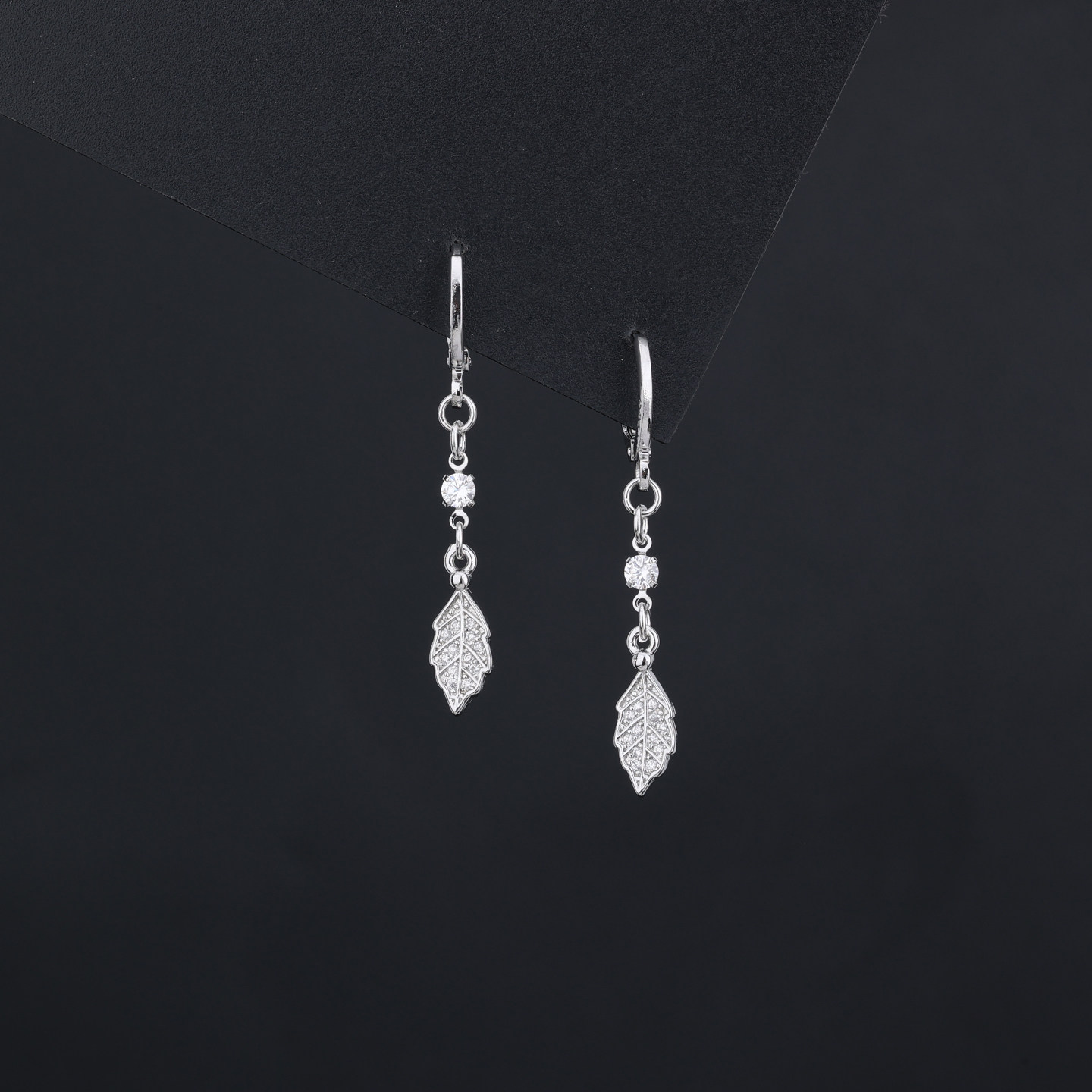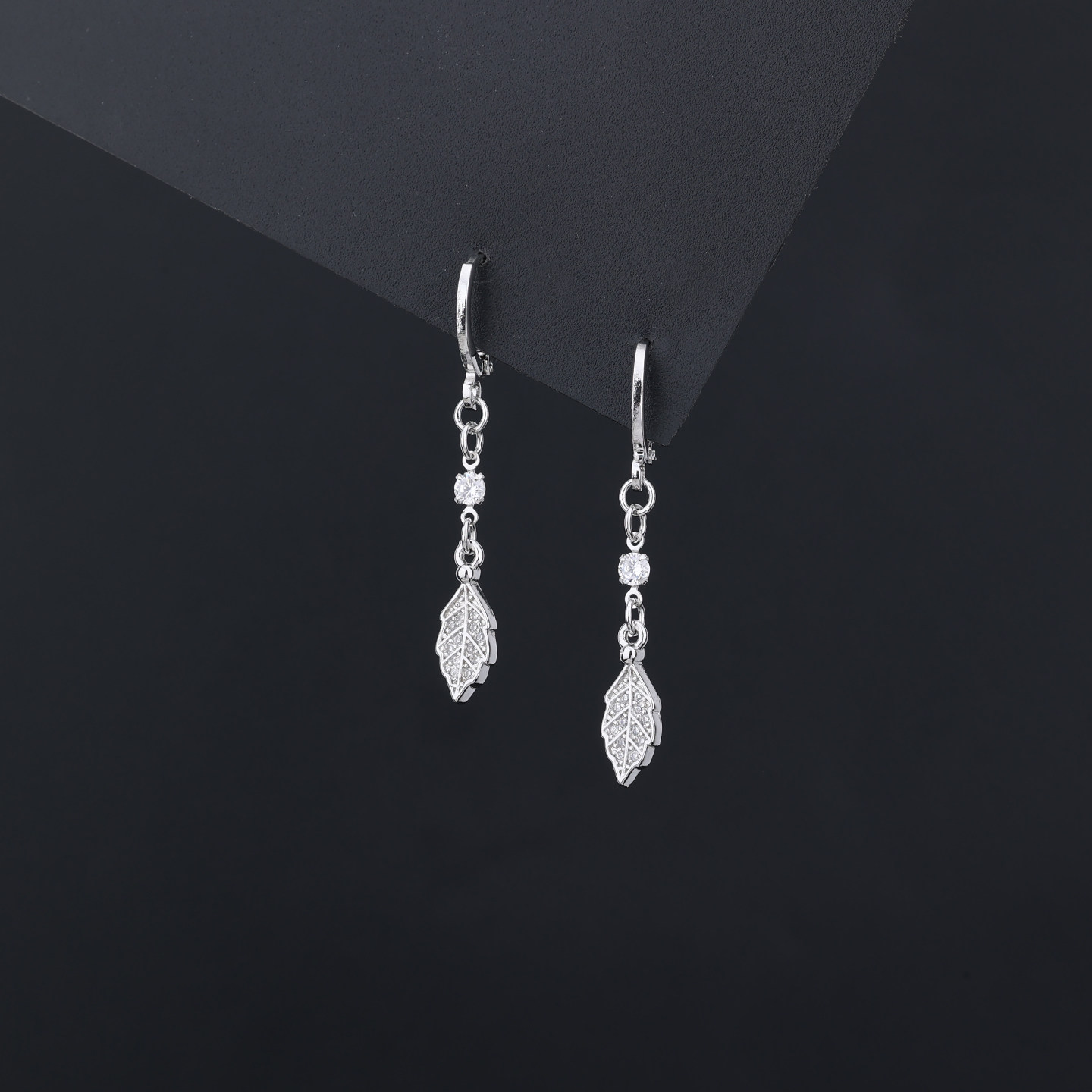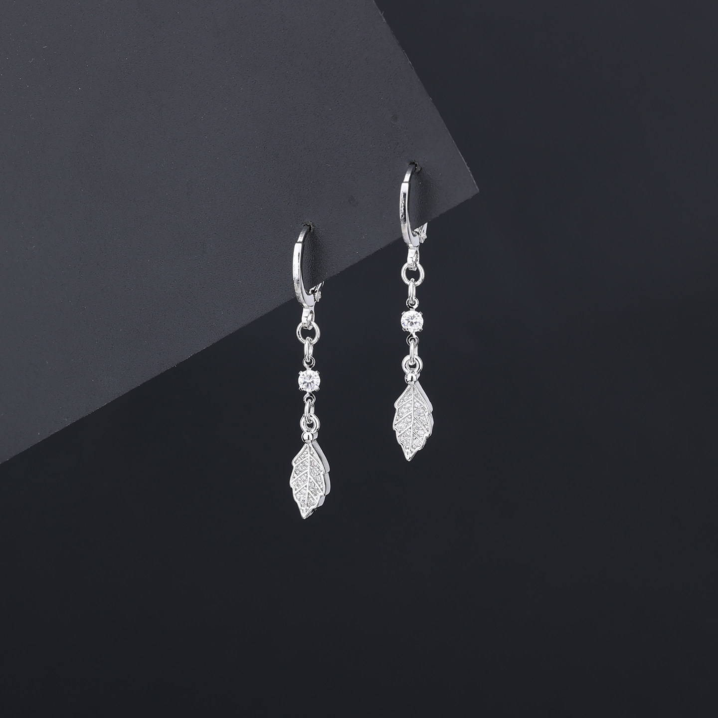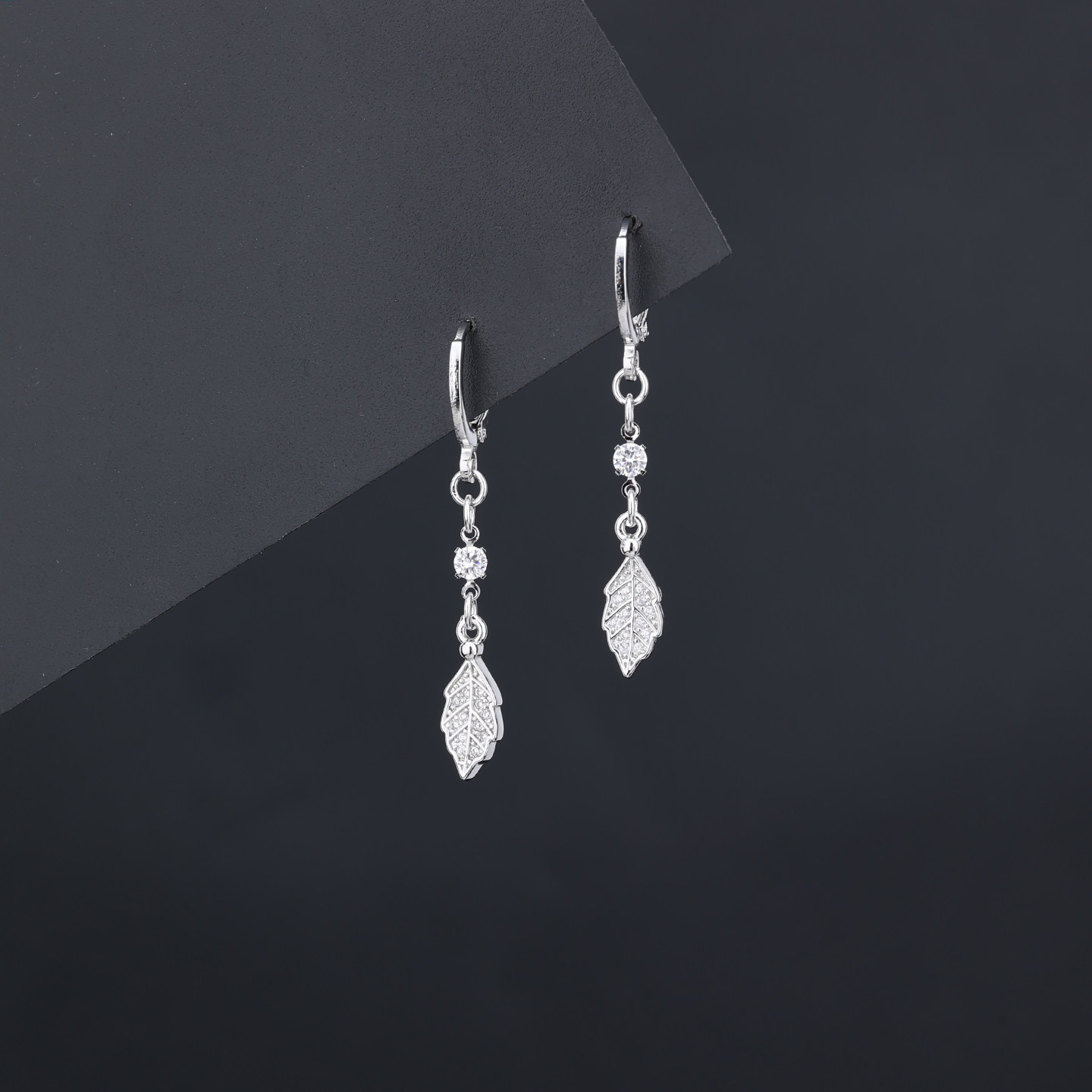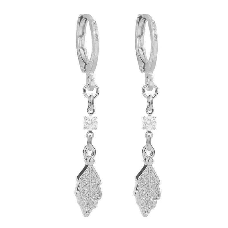📚 s925银针镶钻水滴树叶耳扣女气质短款流苏耳环2026新款小清新耳饰