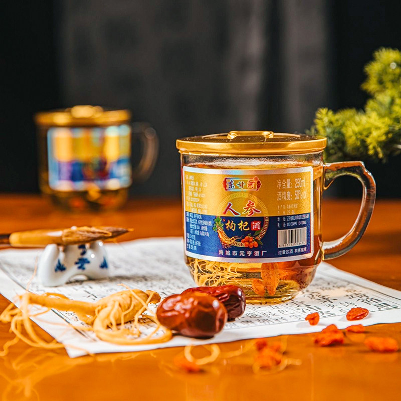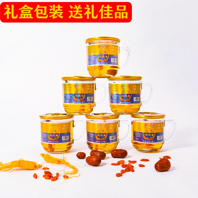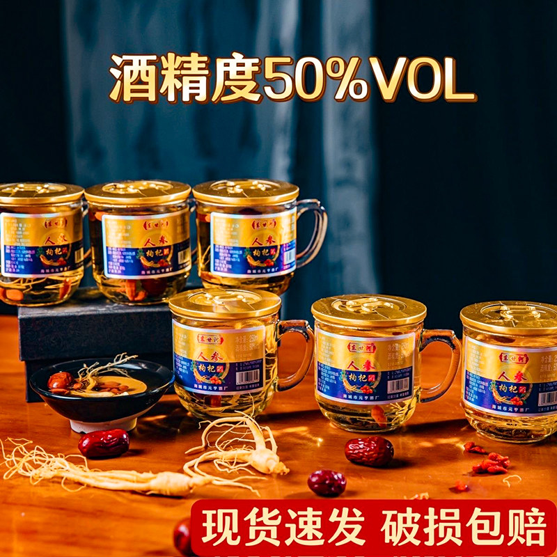 📚 东北人参枸杞大枣酒50度茶杯酒枸杞大枣酒250ml*6瓶礼盒装整箱酒