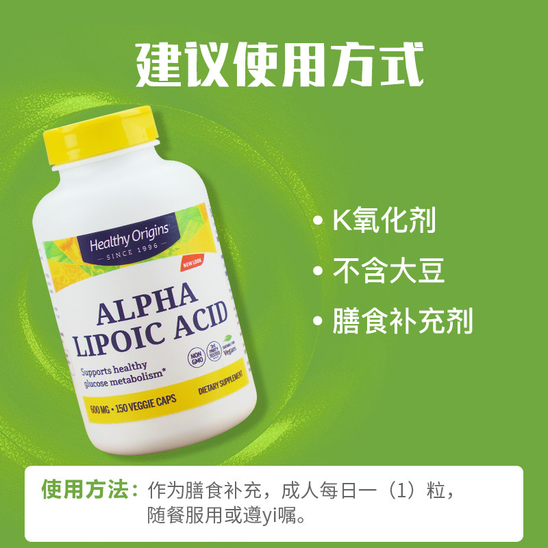 📚 速发美国硫辛酸 美百调血.糖 600mg 150粒Healthy Origins