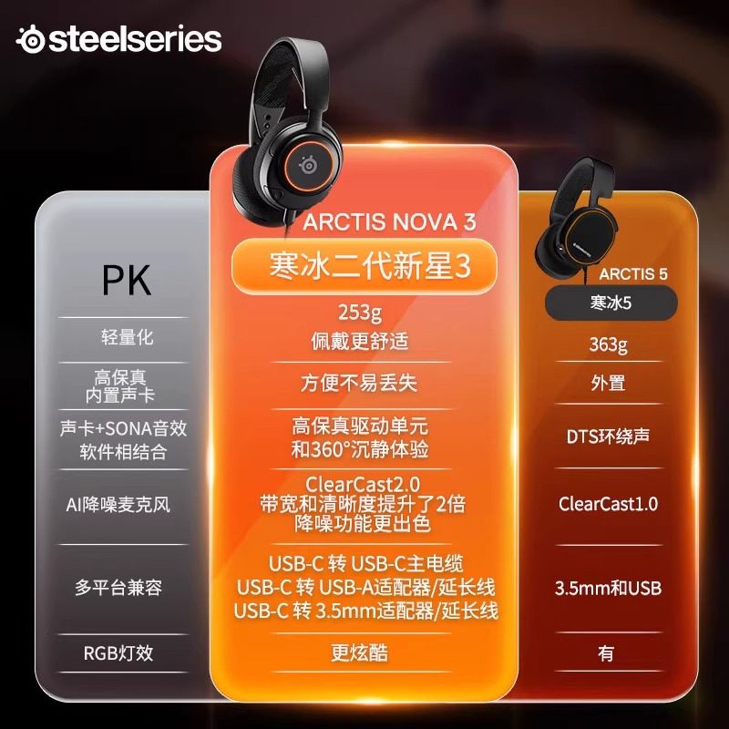 📚 【自营】steelseries/赛睿Arctis Nova3游戏耳机头戴降噪耳麦有线
