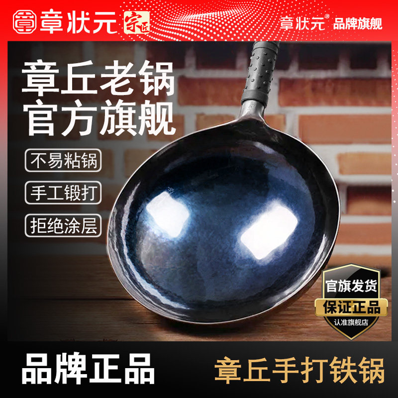 📚 章状元章丘正品炒锅手工铁锅官方旗舰传统老式家用无涂层不粘锅