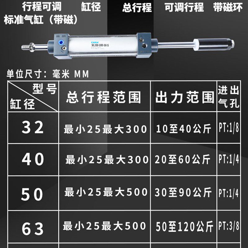 📚 气动小型双出头行程可调标准气缸r大全SCJ32 40 50-50 100 200-5