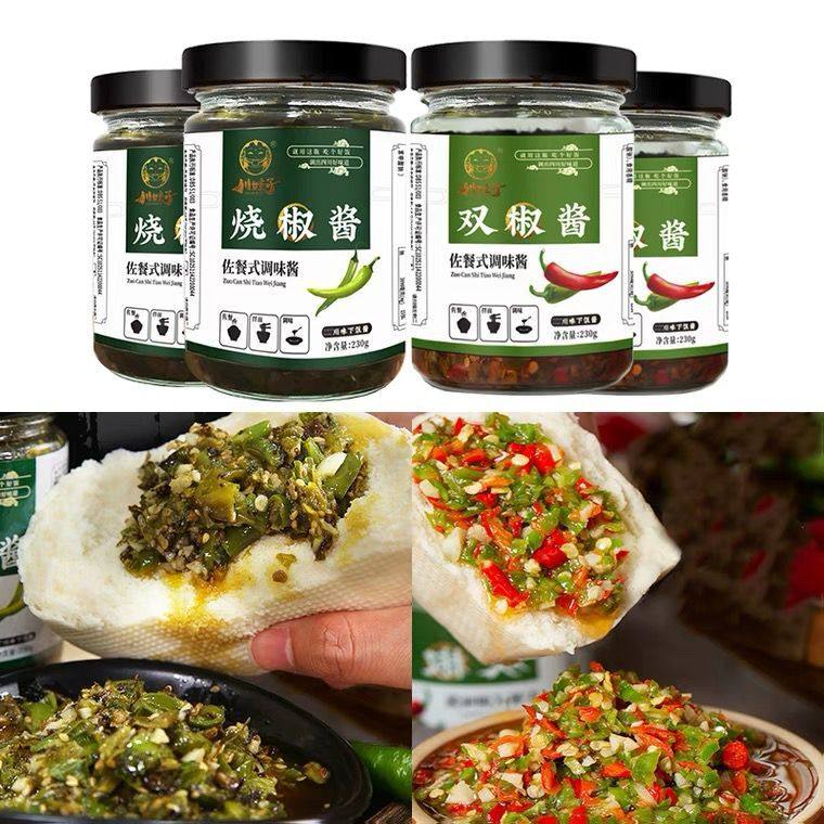 📚 川娃子烧椒酱青椒酱暴下饭拌饭酱辣酱剁椒酱双椒酱烧焦四川辣椒酱