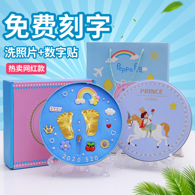📚 宝宝满月手足印泥胎毛纪念品相框新生的婴儿脚印手印百天周岁礼物