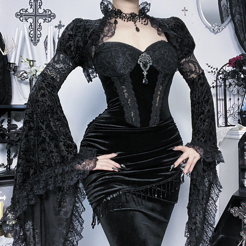 📚 XS25308秋季新款礼服吊带连衣裙 亚文化百搭暗黑风气质修身长裙