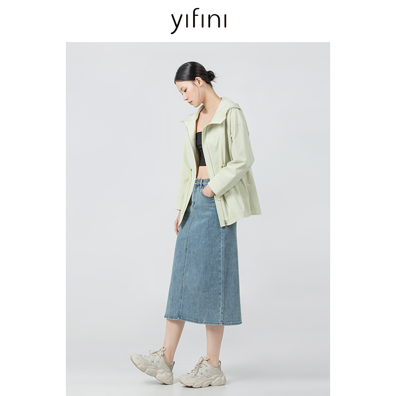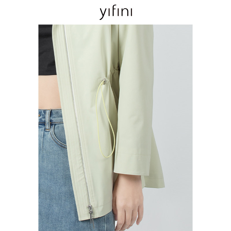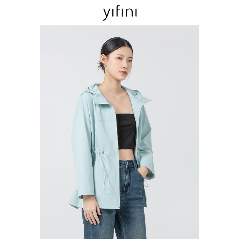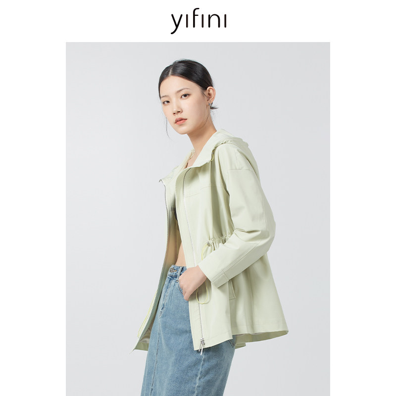 📚 Yifini/易菲宽松连帽抽绳收腰风衣女春秋新款通勤小个子外套