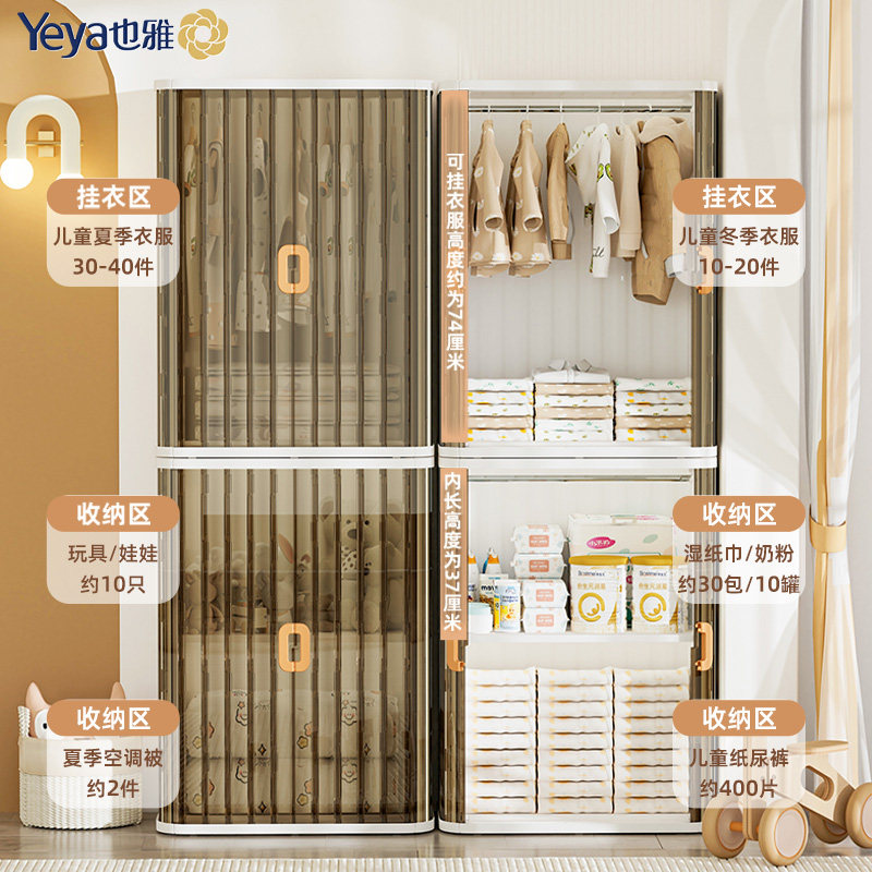 📚 也雅可折叠收纳柜家用宝宝衣柜小衣橱简易双卷门储物柜塑料置物柜
