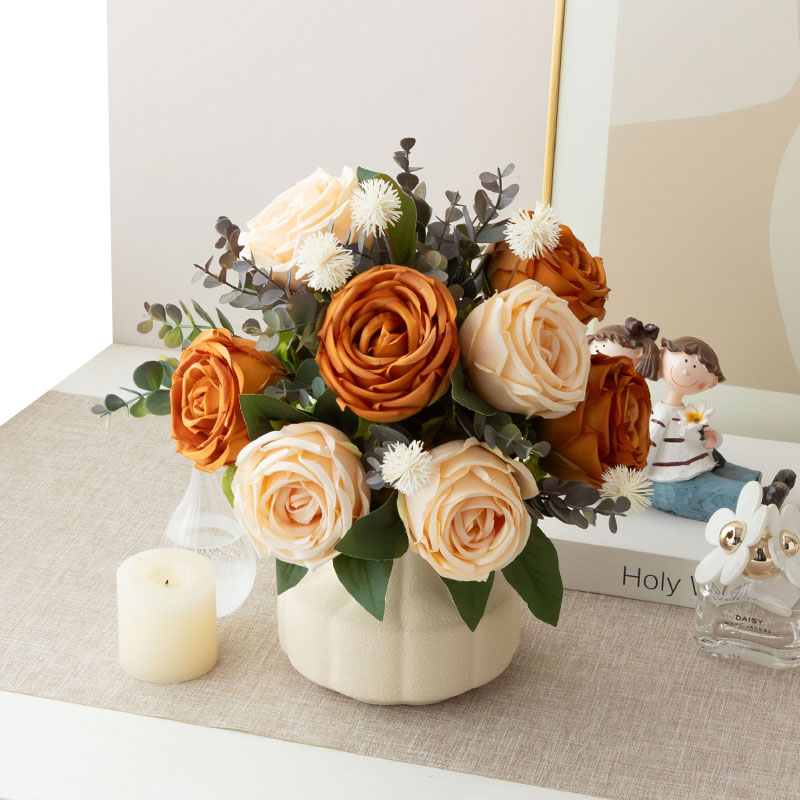 📚 仿真花假花美式复古油画风欧皇玫瑰高端轻奢客厅餐桌玄关装饰摆件