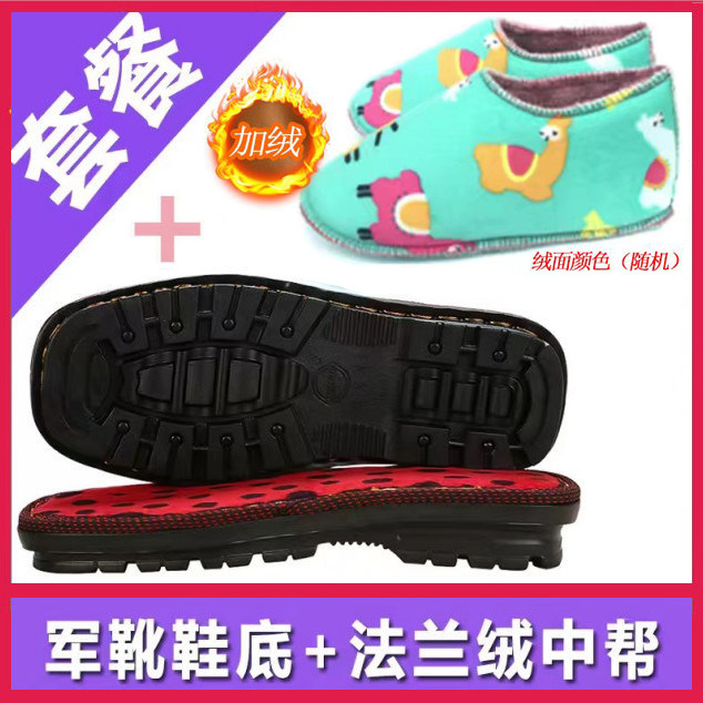 📚 孺子牛鞋底手工编织毛线棉鞋海绵鞋帮棉靴橡胶防滑耐磨牛筋拖鞋底