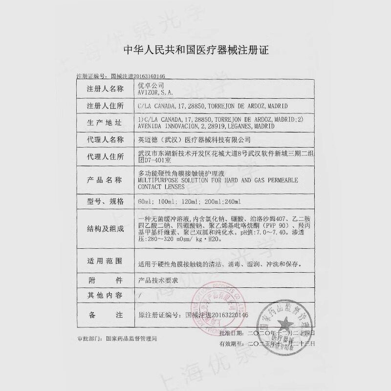 📚 avizor优卓gp护理液硬性隐形眼镜RGP角膜塑形镜ok镜片120ml护理TF
