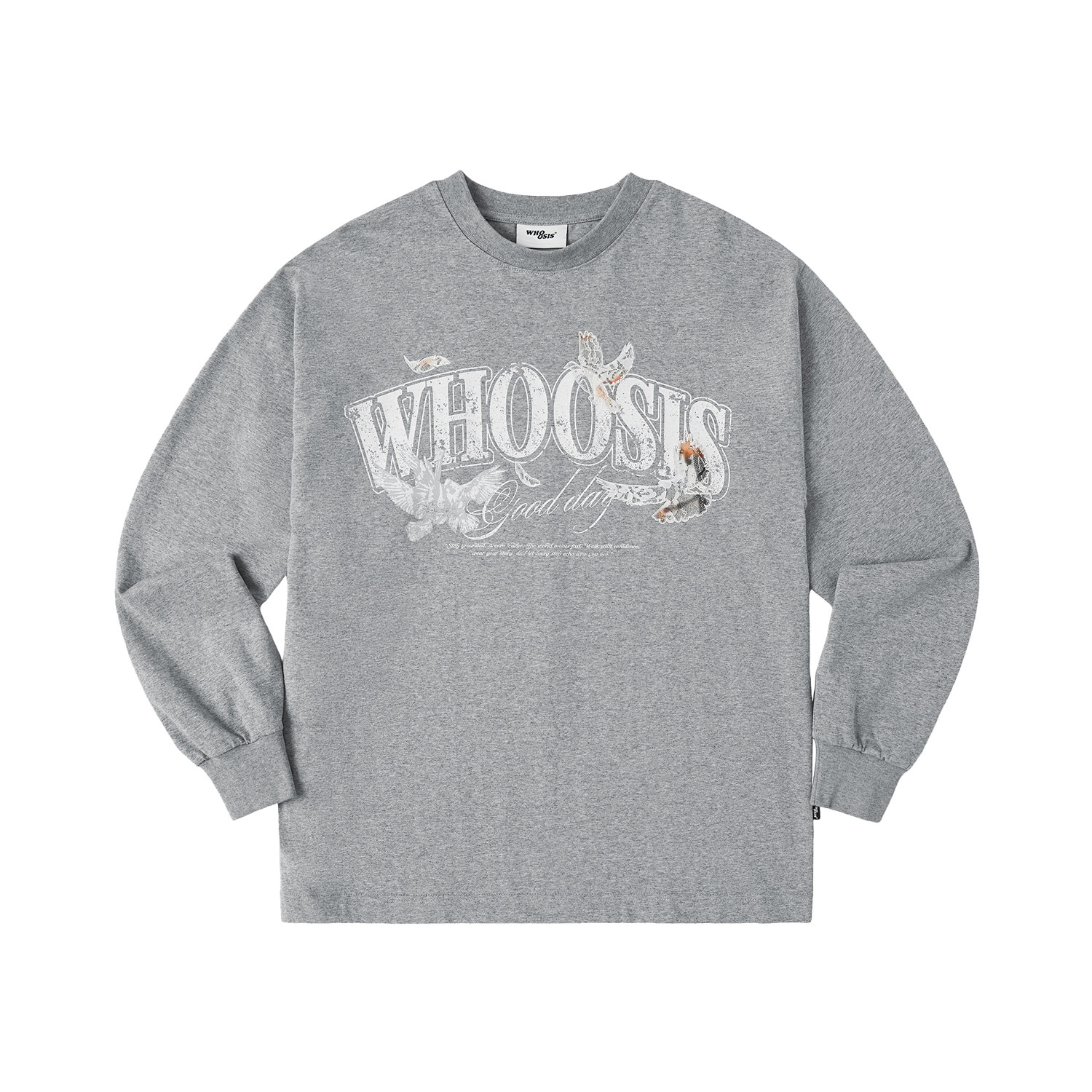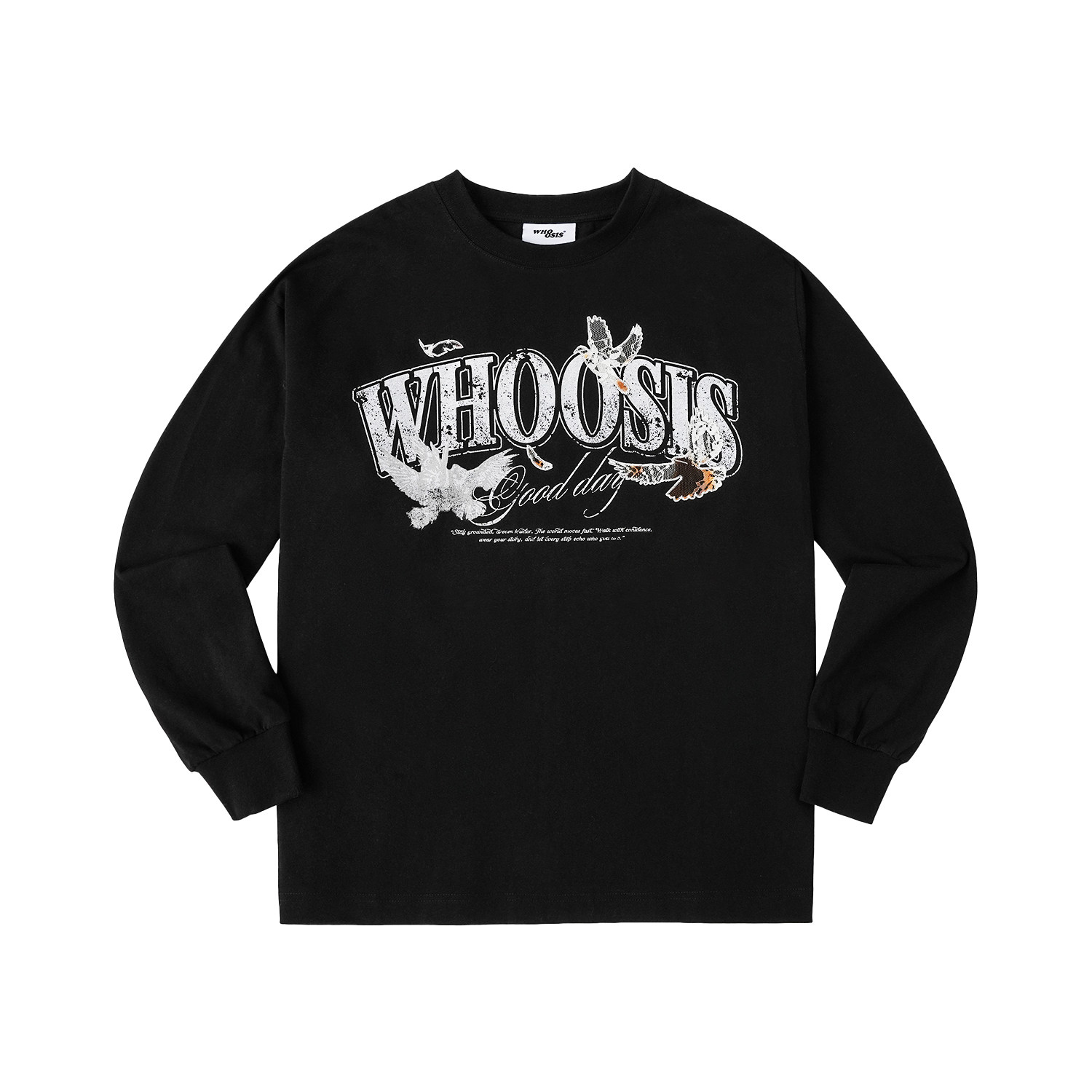 📚 WHOOSIS(不知其名)鸽子蕾丝贴布长袖T恤秋季百搭打底校园情侣潮