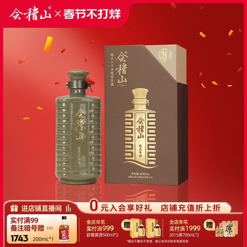📚 【年货礼盒】会稽山正宗黄酒纯正二十年陈老酒糯米花雕酒高档送礼