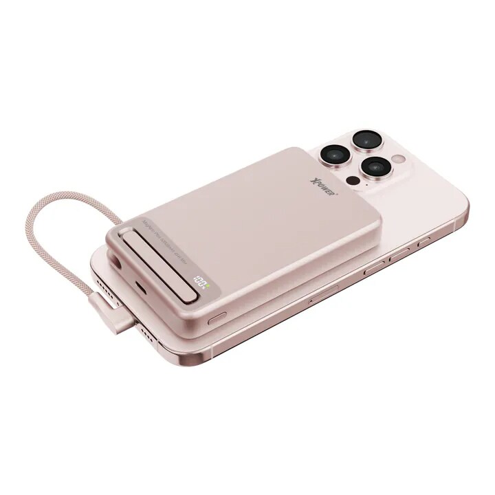 📚 香港Xpower无线磁吸充电宝3c认证可上飞机45W快充适用苹果超薄小巧便携自带线大容量可带上高铁火车手机支架
