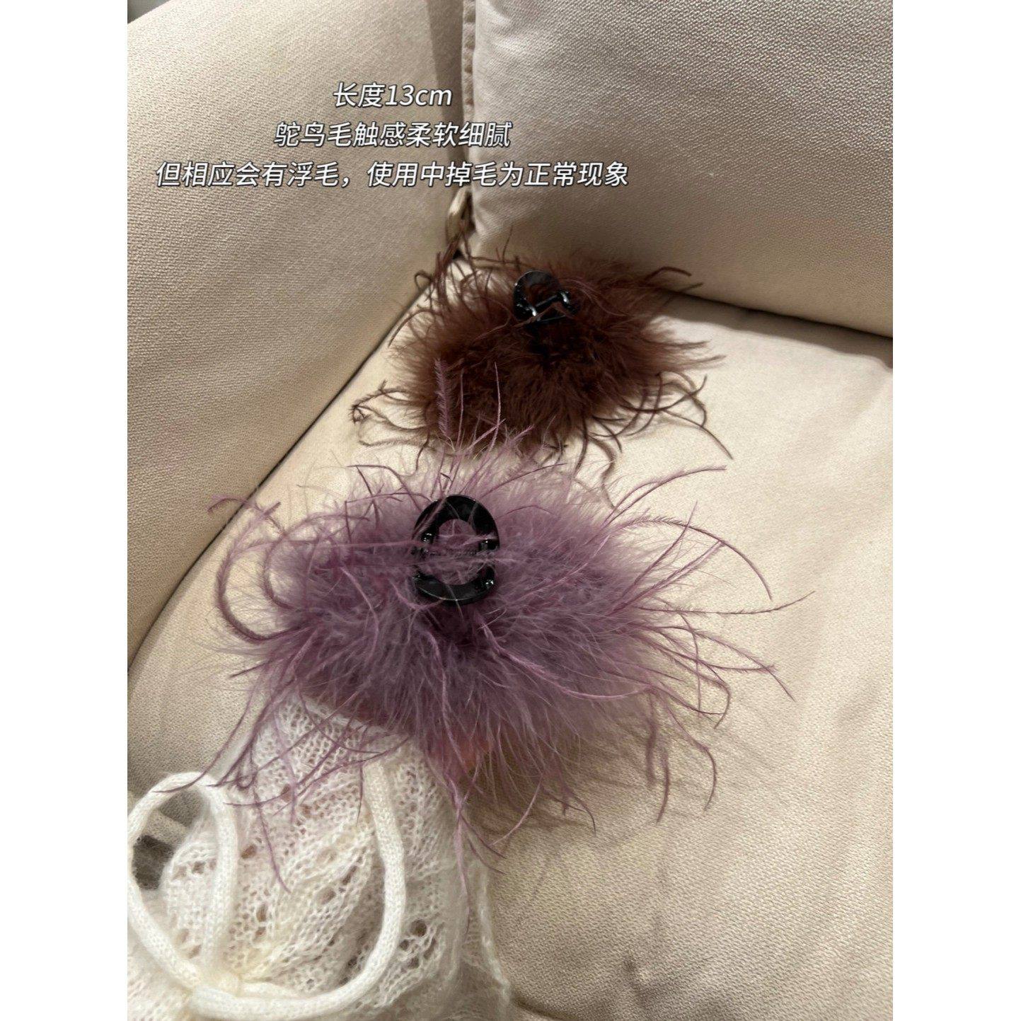 📚 小脑瓜的店13cm加毛量驼鸟毛发抓后脑勺鲨鱼夹氛围感头饰发饰环保
