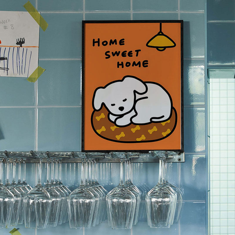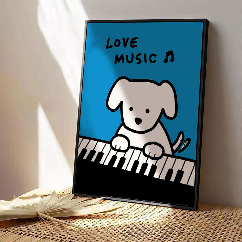 📚 日韩多巴胺趣味卡通小狗壁画小清新艺术惬意休闲客厅卧室装饰画芯