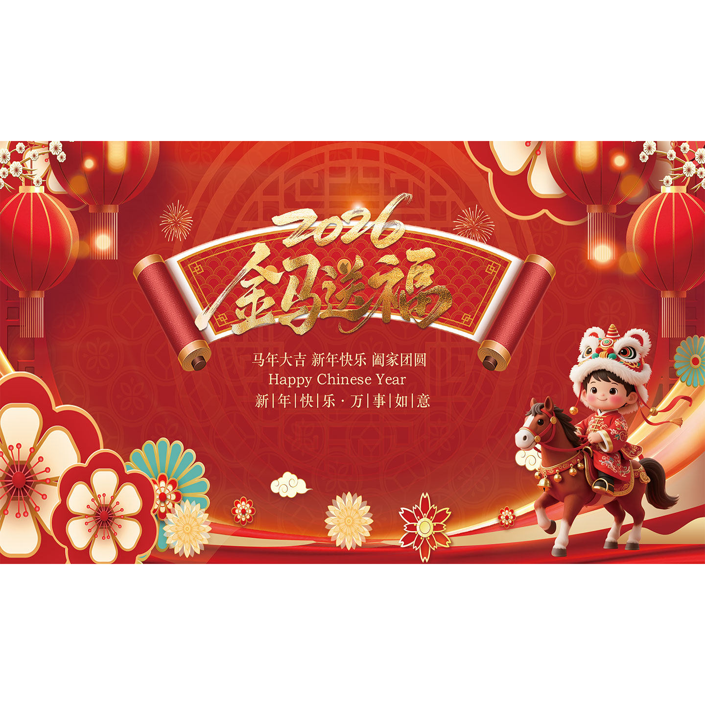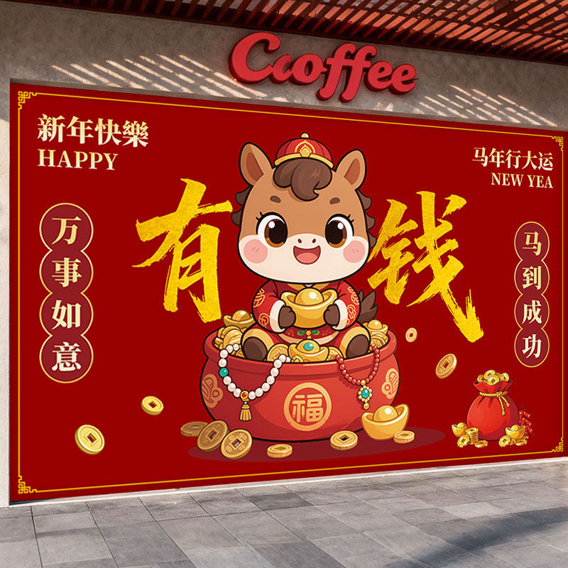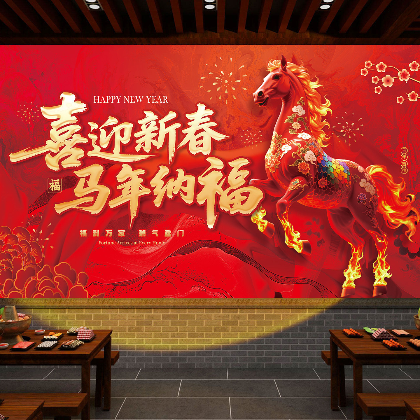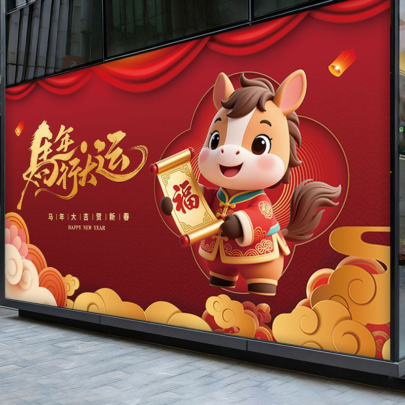 📚 马年年会背景装饰画2026新款新年布置装饰壁纸过年春节喜庆贴画