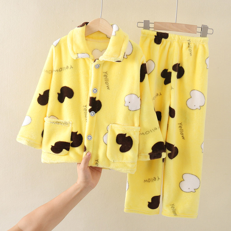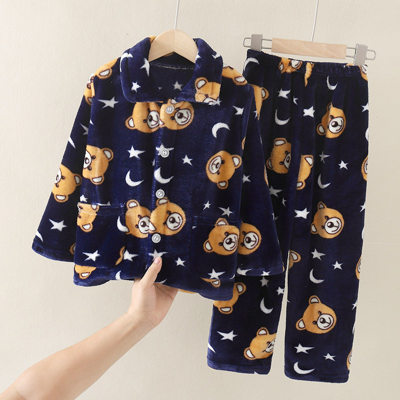 📚 秋冬季儿童睡衣法兰绒宝宝小孩男童女童大童珊瑚绒加厚款春秋套装