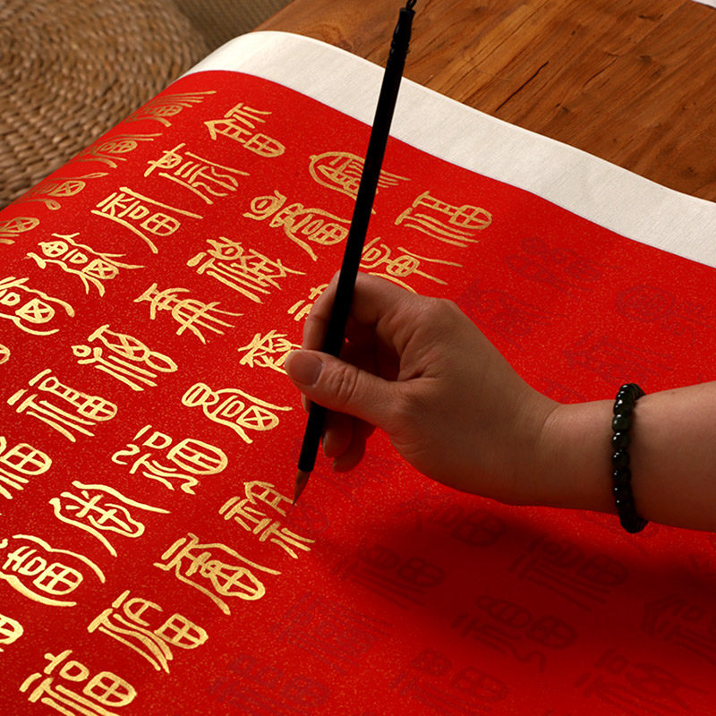 📚 【百福图】临摹百福图百寿图卷轴书法字体描金卷轴送礼赠送祝贺喜庆节日搬迁画轴DIY手抄百福万年红装饰挂轴