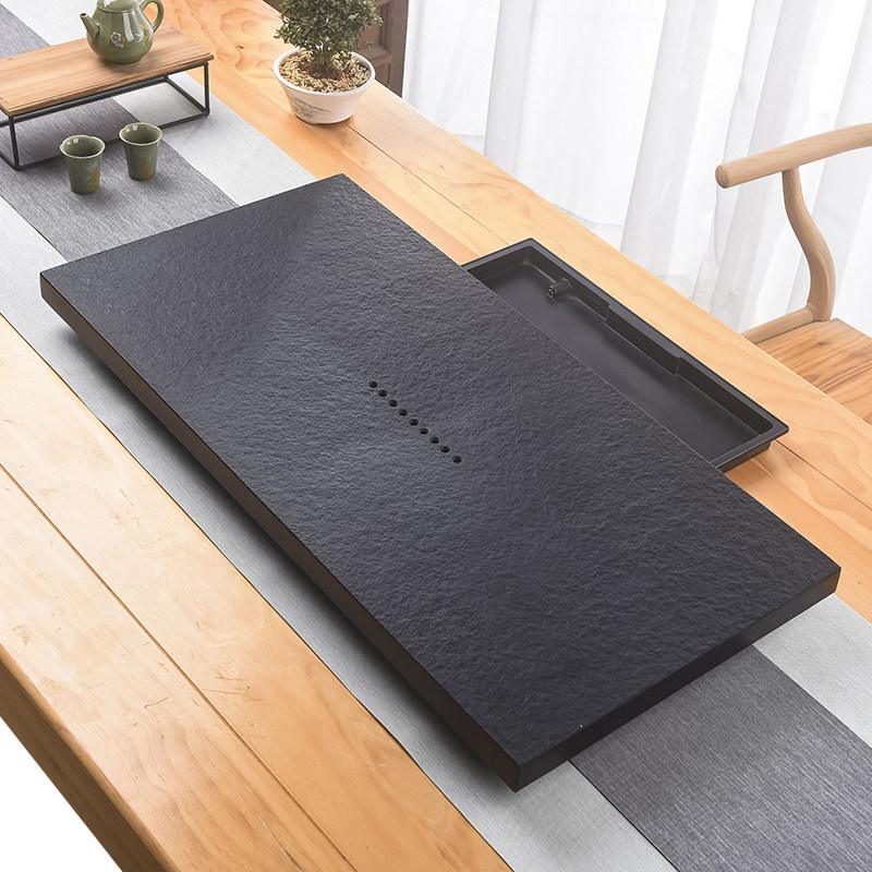 📚 天然乌金石茶盘客厅抽屉储水式茶具石茶盘办公茶台盘茶盘新款家用