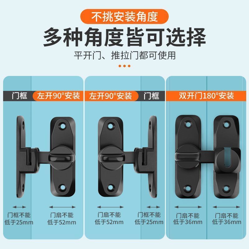 📚 免打孔90度推拉门锁厕所卫生间门插销门栓移门锁推拉门搭锁扣安全