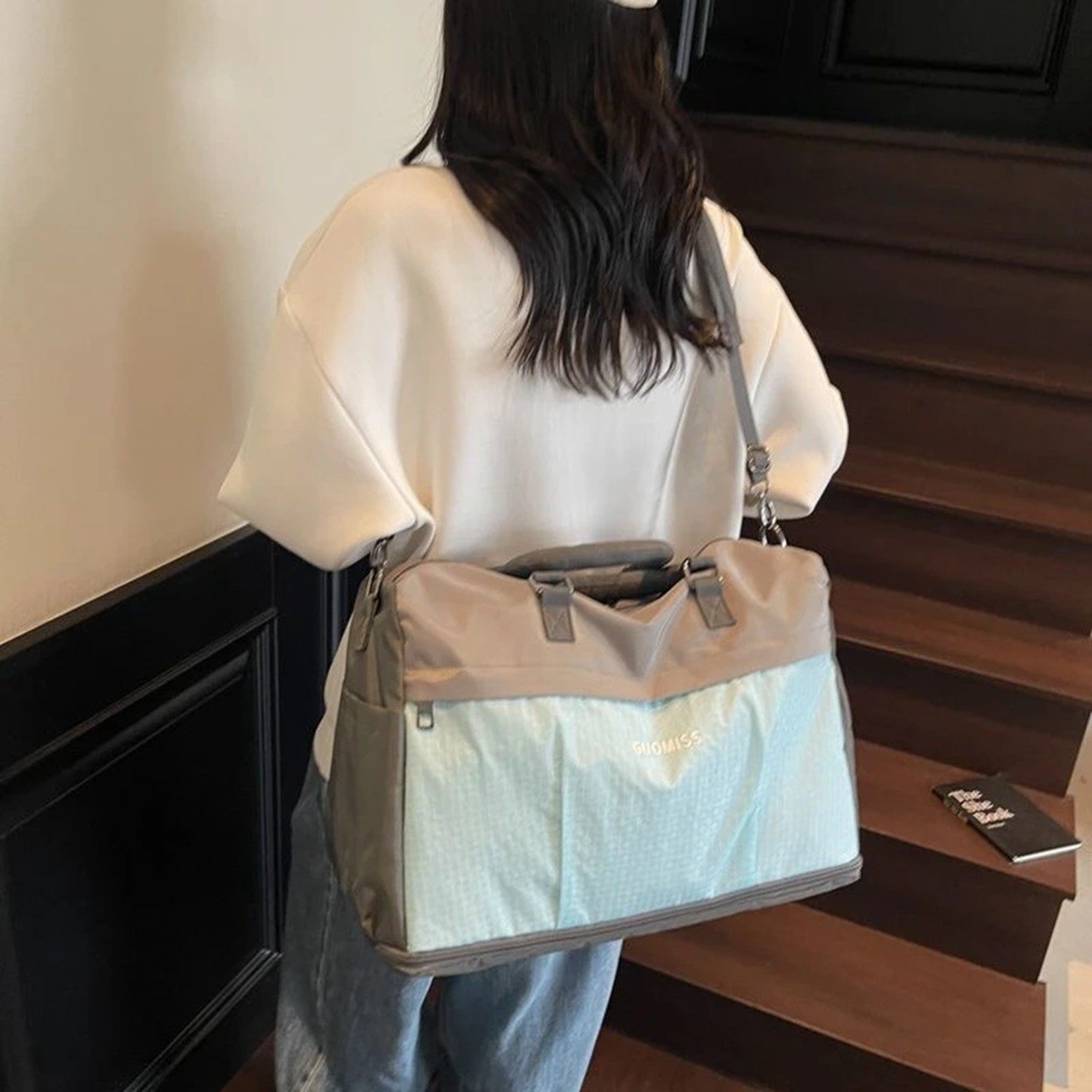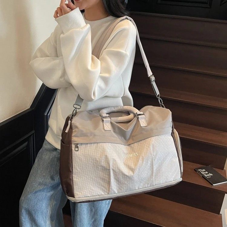 📚 #宏嫩拼色复古大容量旅行包2026年新款手提包轻便行李包运动健身