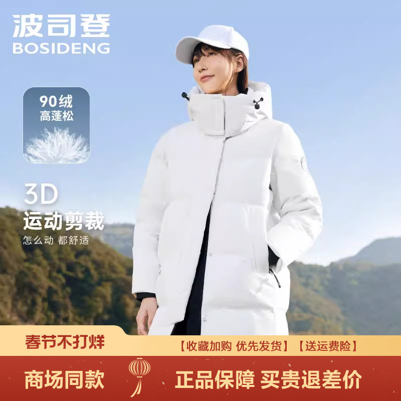 📚 波司登新品中长款羽绒服女士可脱卸帽冬装韩版时尚保暖外套