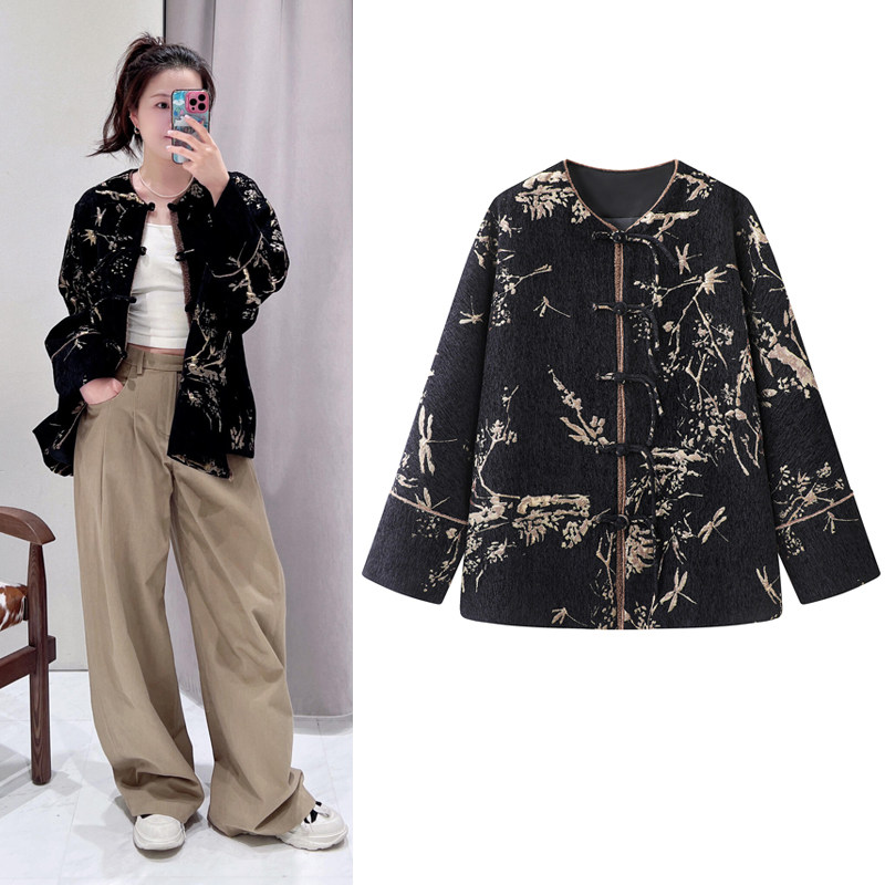 📚 于适同款国风外套2026春季新款复古新中式重工提花盘扣棉服上衣女