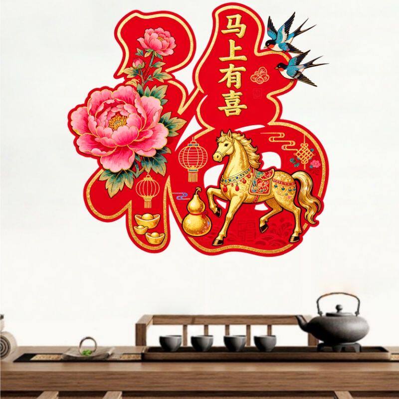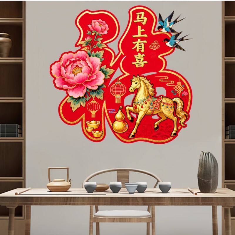 📚 新款国潮马上有喜福字贴画装饰贴纸客厅玄关背景墙面墙防水贴纸